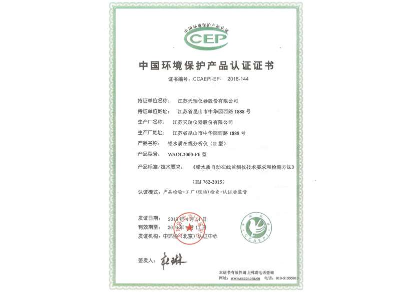 中国环境保护产品认证证书