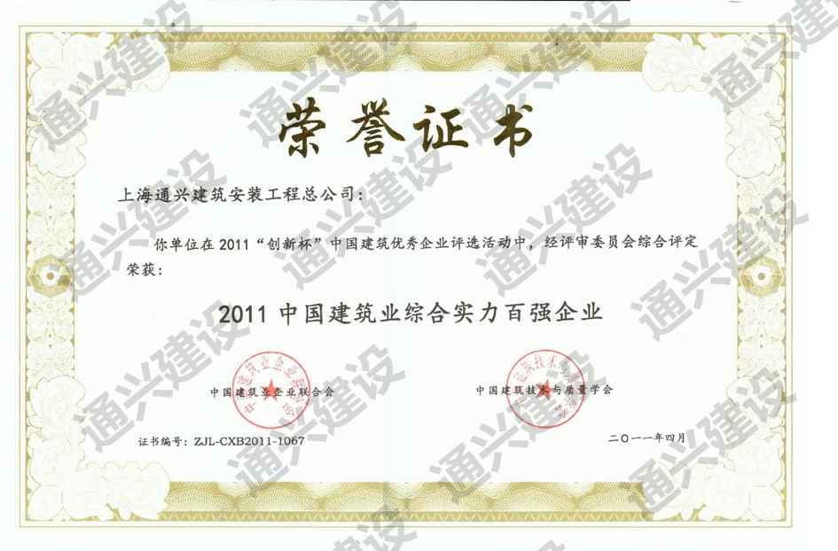 2011中国建筑百强企业 博鳌证书